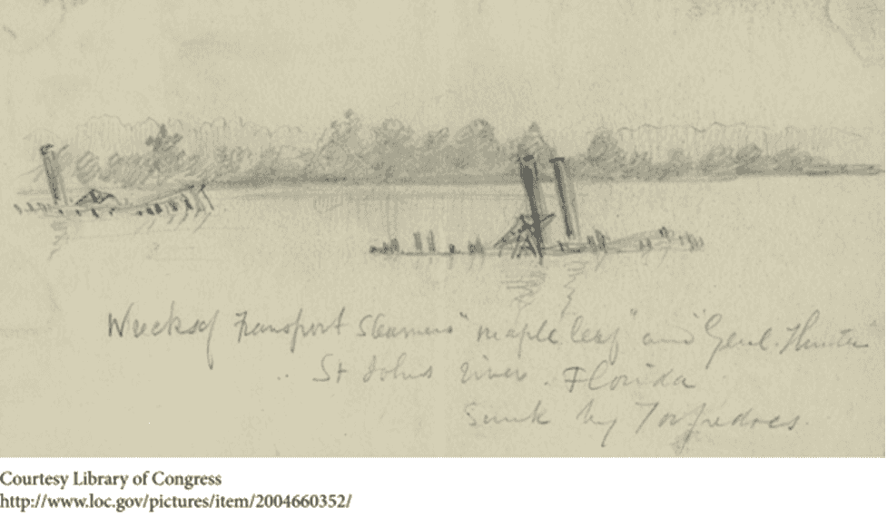 In 2012-2013, Brockington and Associates were authorized by St. Johns County, Florida to prepare a historic study and architectural review of Northwest St. Johns County. The project involved a history of the region including identification of potential archaeological sites and architecturally significant structures. The work centered around Florida Highway 13, also known as the William Bartram Scenic and Historic Roadway. Charles Philips was Project Manager for the work. It involved archival research, oral history interviews, location of historic maps and plats, and architectural assessment of 50+ year old buildings in the area. The area was first settled by the Spanish in the 16th century and included information on former fortifications, missions, British and Second Spanish Period Plantations, American Antebellum settlements, Civil War engagements, turpentine sites, and Post Bellum river settlements such as Fruit Cove and Switzerland, historic roadways, as well as subdivision of the region for river houses as early as the 1920s. The work along with the oral histories, radio program topics, and Secondary School lesson plans won a Florida Trust for Historic Preservation Award. The drawing below shows two US Gunboats, the “Maple Leaf” and the “General Hunter,” sunk by Confederates off Northwest St. Johns County during the Civil War. The photograph below shows a family picnic along the river in the 1930s used in the Lesson Plans. (Client: St. Johns County, Florida and William Bartram Scenic and Historic Highway)