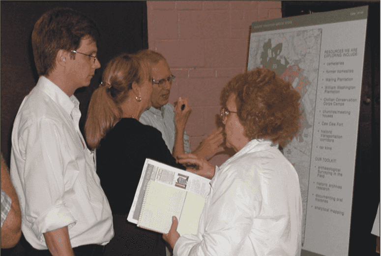 Historic Overview and Strategic Plan for East Edisto. East Edisto Manuscript Series I. [2008] In 2007, Brockington and Associates was asked to join the Mead Westvaco Planning Team for the 72,000-acre East Edisto Development Project. East Edisto is a large 200,000 acre region of timberland and farms where Mead Westvaco was the primary landowner and had been for nearly 70 years. The land lay within Charleston and Dorchester county plans for development. It was also a historic area with many possible cultural resources dating to the seventeenth century. Charles Philips was given the task of Project Historian and compiled an overview of the history of the massive region between the Edisto and the Ashley River. The area included dozens of former plantations, farms, tar pits, rice fields, settlement sites, fortifications, houses, and numerous other structures as part of the three-centuries of Euro-African settlement. It was particularly rich in African American Antebellum and Postbellum sites. Mr. Philips consulted and consolidated archives from numerous locations that included public and private papers, public meetings, oral histories, plats, and maps to prepare the historic overview. The East Edisto project is ongoing, and he has remained an integral part of the cultural resources work there. The map below shows the East Edisto region in brown. The photograph shows Charles Philips and Ralph Bailey gathering information from long time residents of the area at one of the many public meetings. (Client: MeadWestvaco Development Company [MWV])
